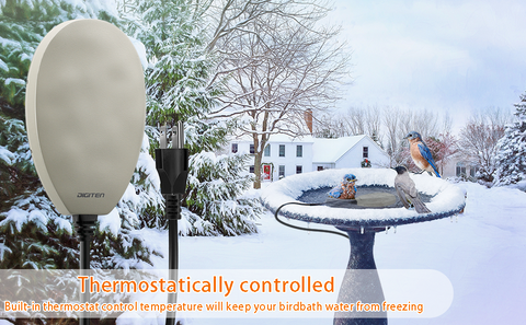 - đŚăDeicingăThe birdbath deicer can be worked through thermostatically control to keep the birdbaths from freezing in winter. The deicer wonât heat water. 50W 120VAC low power consumption is adopted to ensure safe use and save electricity.