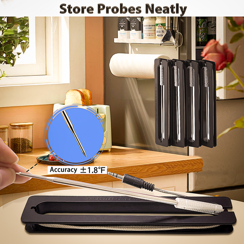 All 4 waterproof stainless steel probes of the meat thermometer feature a wide temperature range with a highly accurate sensor enabling you to monitor any type of meat temperature changes and ensure the optimal temperature and taste.