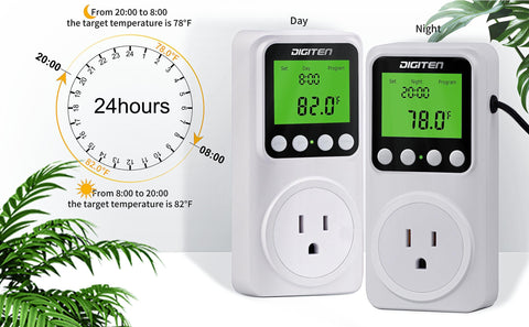 DIGITEN Temperature Controller Day/Night Temperature Controlled Outlet Reptile Thermostat Timer Greenhouse Thermostat with Timer Heat Mat Thermostat Outlet Heating Cooling Temp Control for Homebrewing