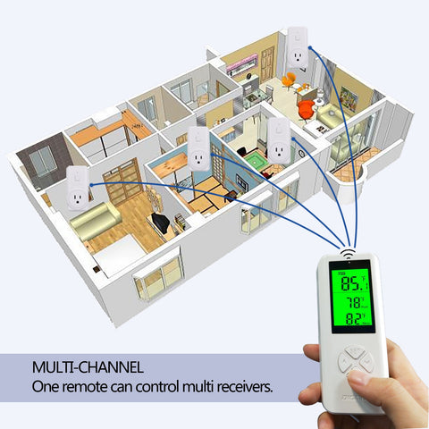 The wireless thermostat will automatically turn on/off heating or cooling devices through your preset target temperature. Easy to set, control Cooling and Heating device, monitor rooms temperature.
