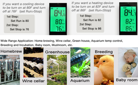 - 🎈【Widely Used】: Widely used for greenhouse,mushroom house, reptiles breeding, pet feeding, wine cellar, cigar storage, home brewing, seed germination, fermentation, baby room, attic fan, swamp cooler, evaporative cooler, space heater, wall panel heater, electric fireplace heater, garage, etc.