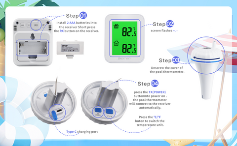 - 🛁【Long distance remote monitor】The pool thermometer monitoring distance can reach 300 ft. In the open swimming pool, there is no need to worry about the pool thermometer floating away. And it will keep connected for a 300ft distance. In your house, you can check the temperature of the outdoor swimming pool outside the house, the temperature of the sauna, or the water temperature of the sun tub, and you can see it in the indoor temperature monitor.No more hassle walking from the house to the pool, sauna or hot tub, just for the temperature check. You can know it in the house.